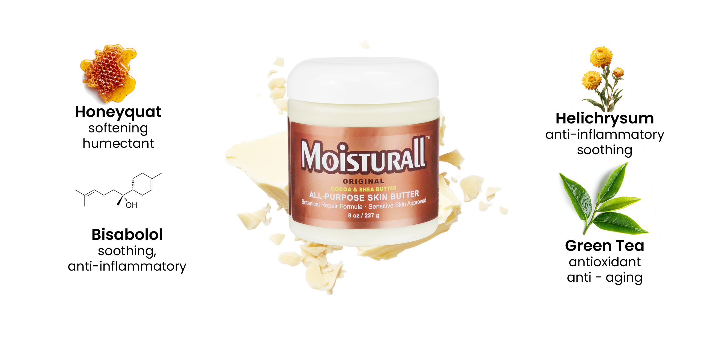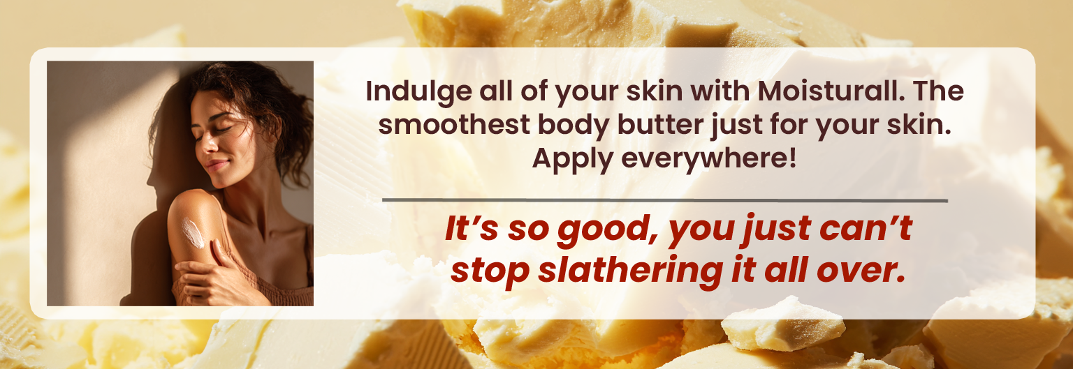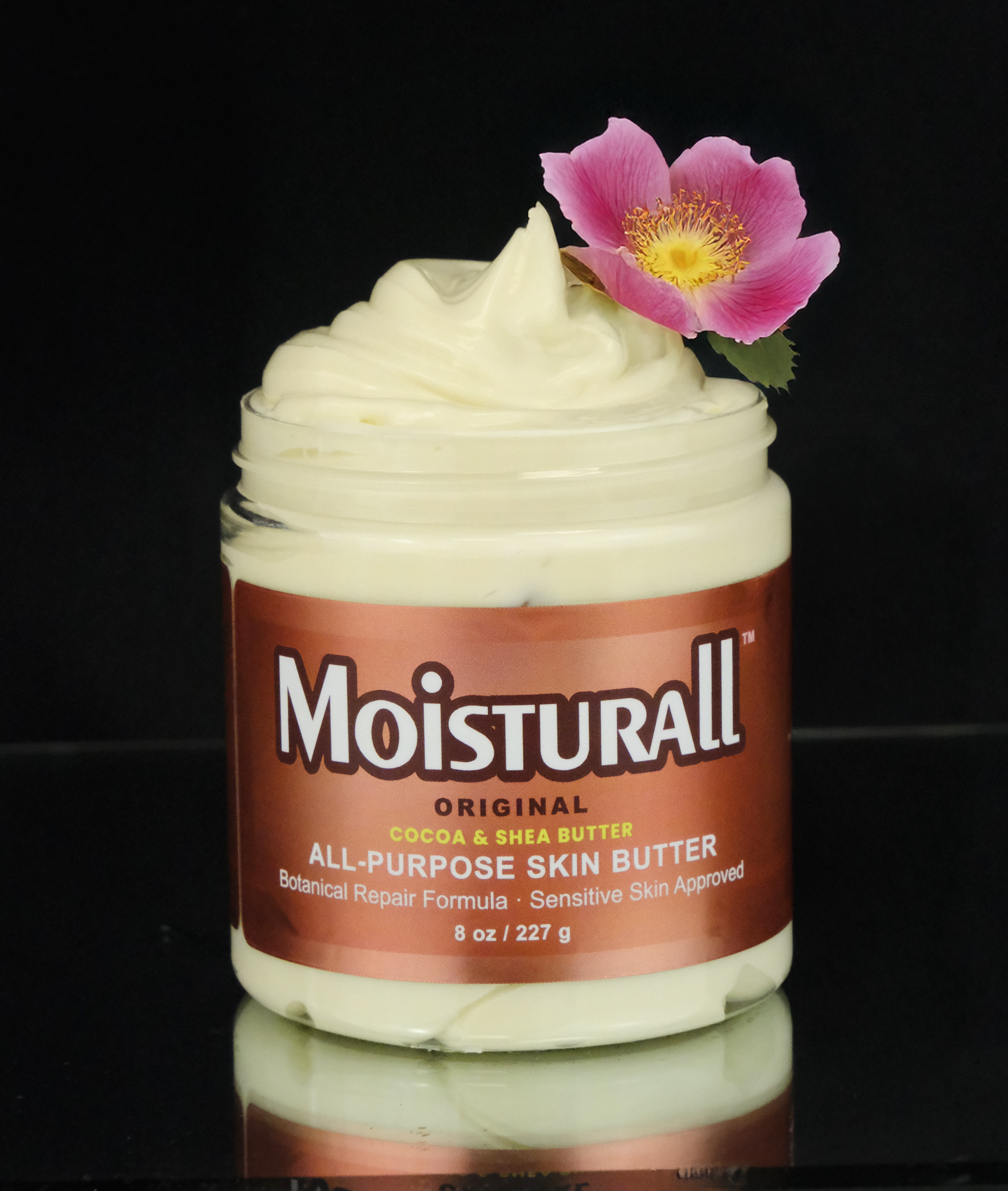 Moisturall is a rich, all-purpose butter designed for anywhere your skin needs a touch of comfort. Its creamy texture spreads easily, making it a versatile choice for face, body, hands, or any area that could use a little extra softness.